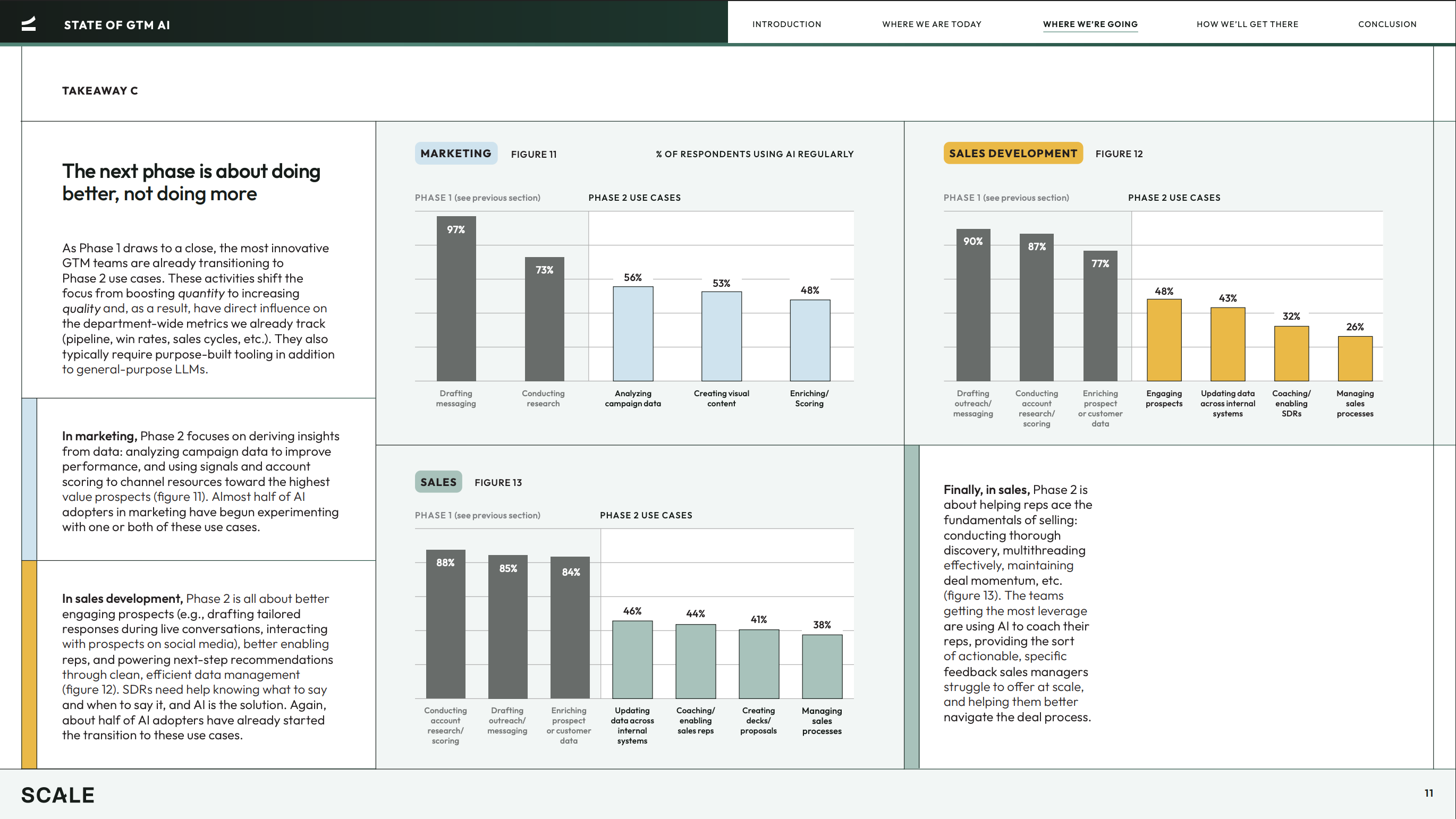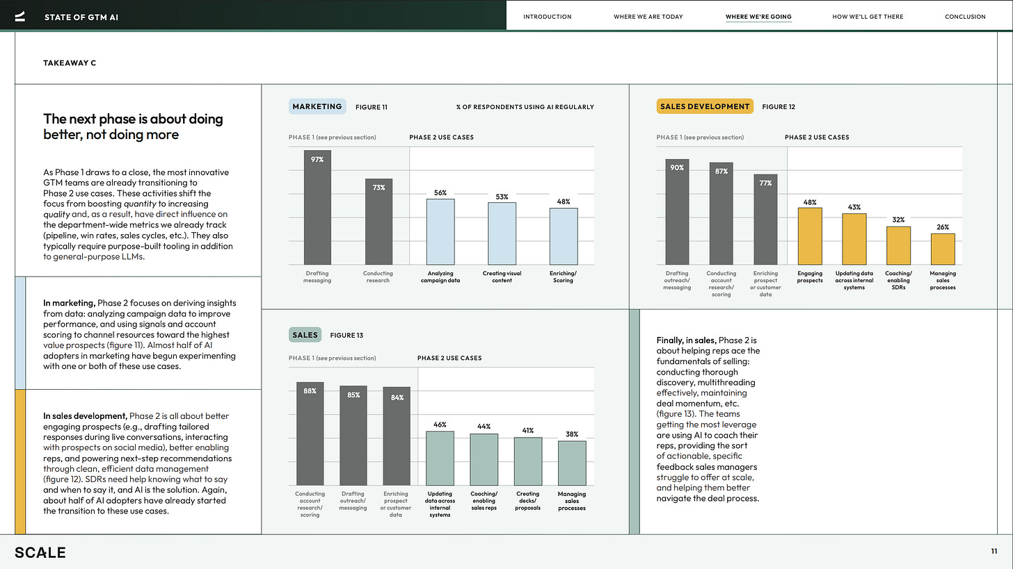 This was the theme of my talk with Kristina McMillan at Scale Venture Partners. Based on Scale’s survey of 300 GTM leaders, it’s clear teams are beginning to use AI to radically augment rep performance, not just improve things at the margins: