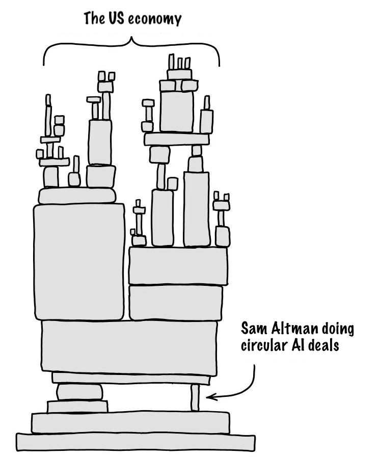 There’s reasonable evidence that the US economy wouldn’t be doing so hot if it weren’t being propped up by the AI boom. We’ve got tariffs, combined with sticky inflation and a cloudy unemployment picture.