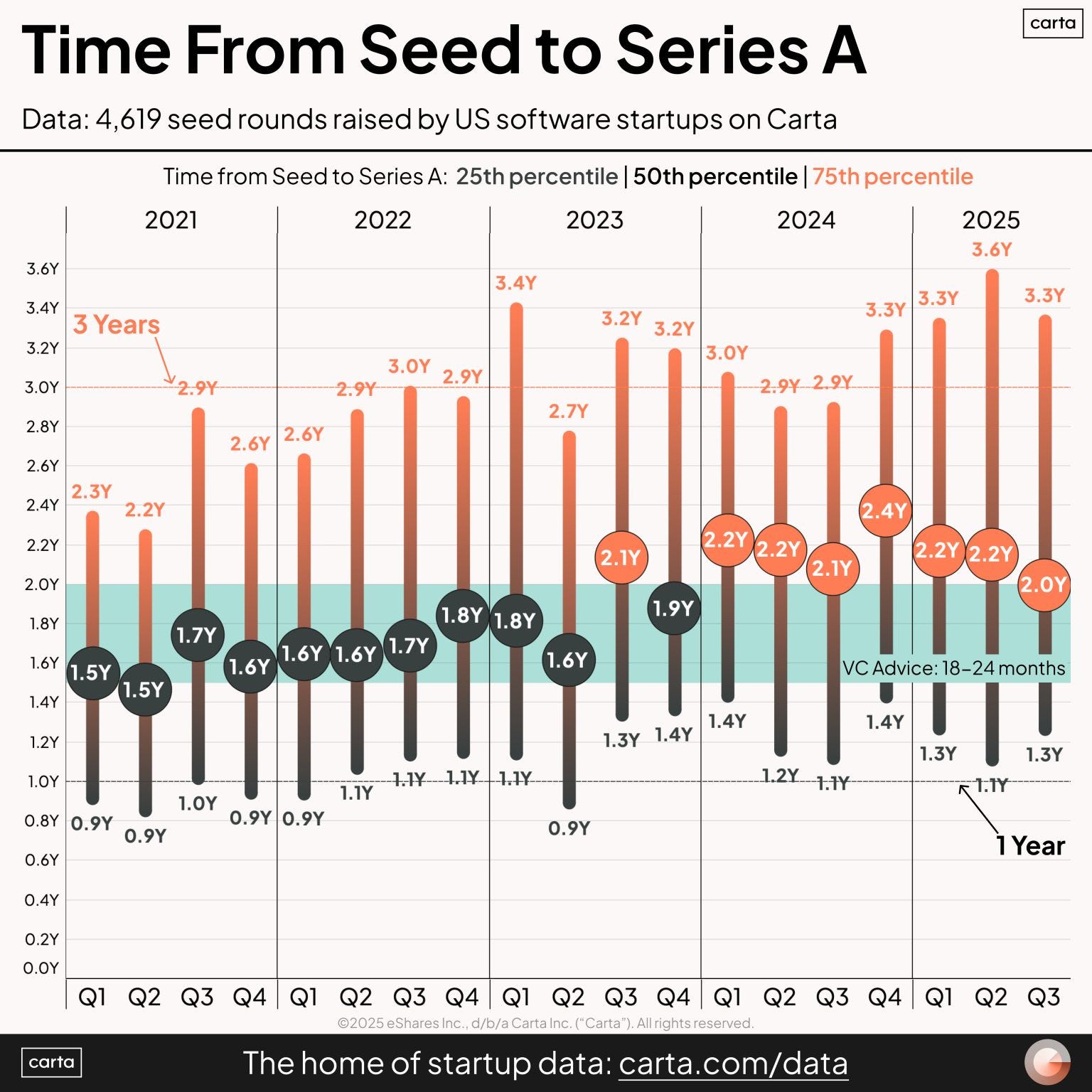 And these are the ones that have gotten to a next round. There are still quite a lot of startups (at all rounds) that have stretched about as far as they can stretch. Carta also reports that bridge round funding ticked up again in 2025. At some point, there really is an end to the runway and we’ve got to be approaching it.