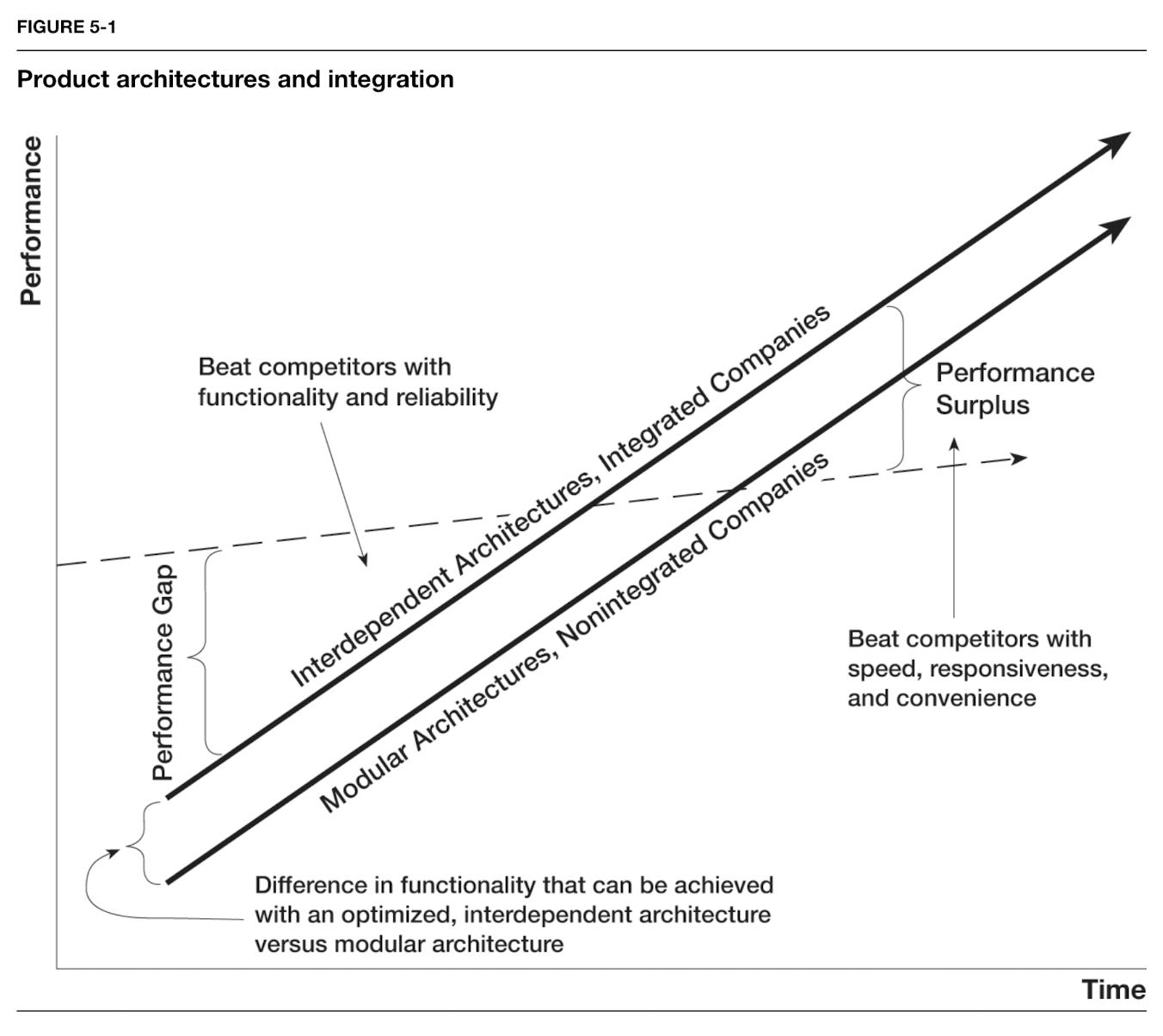 There’s a lot to unpack in both books—they’re not your typical quick business reads. I’m going to focus on a couple of chapters in the Innovator’s Solution where he talks about product architecture and how it impacts business performance.