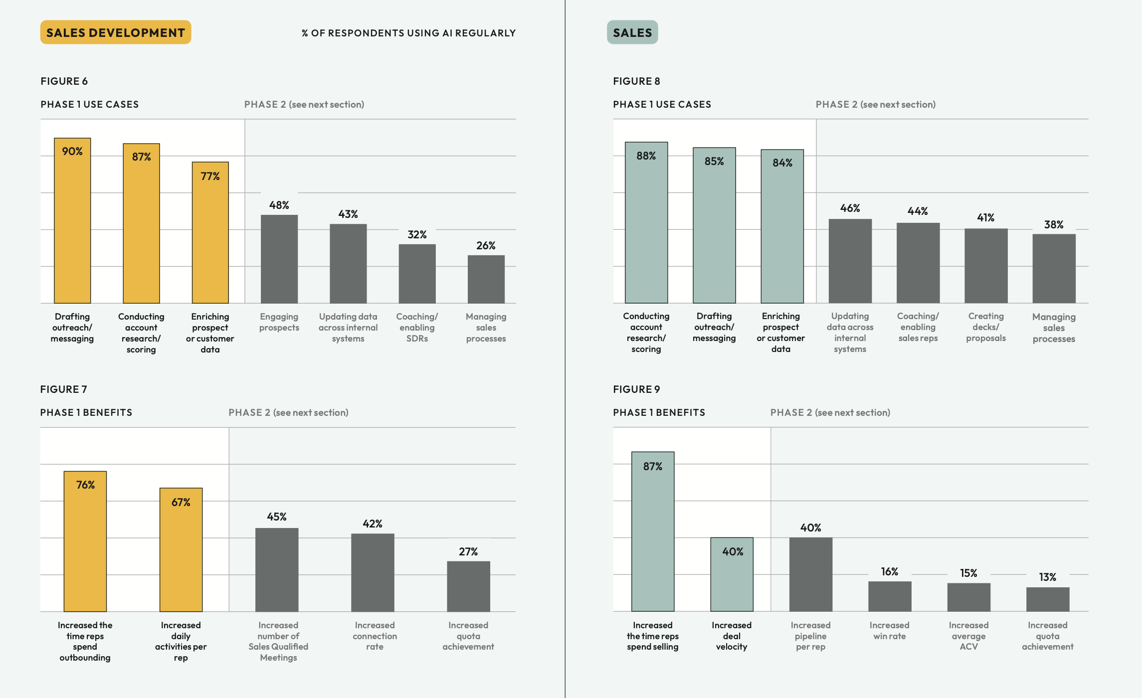 The team at Scale found that regular use of AI is ubiquitous in GTM (even if it’s a bit “lumpy” across teams). If your reps aren’t using AI to impact their individual performance today, you are most definitely behind.